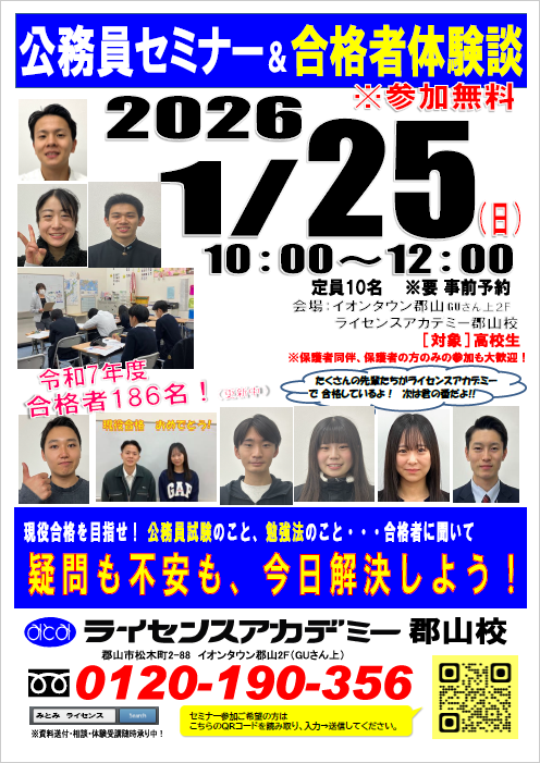 会 場 : イオンタウン郡山GUさん上2F ライセンスアカデミー郡山校